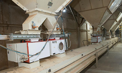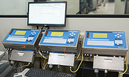 Conjunto de caixas metálicas com o qual, por meio de comandos sistêmicos provenientes do supervisório, a produção consegue dosar a quantidade exata dos lotes de cafés para se obter o blend desejado pelo cliente.