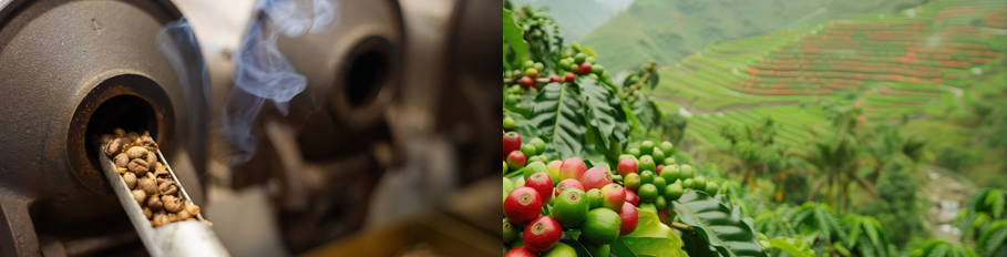 A empresa oferece ao mercado grão verde do tipo arábica, proveniente das principais regiões produtoras do Brasil: Minas Gerais, São Paulo, Paraná e Bahia.
