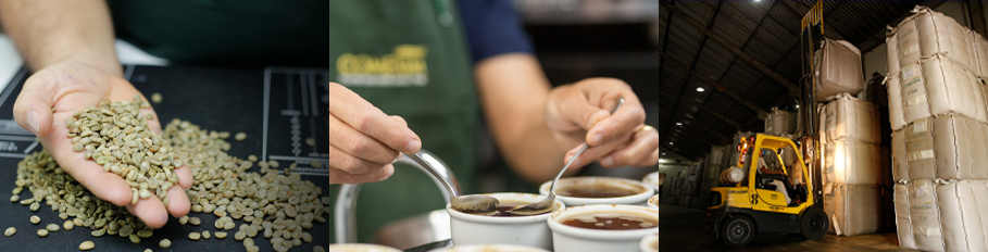 Conta com 97 colaboradores qualificados operando máquinas de última geração nas áreas de recebimento, armazenamento, processamento e embarque de café.